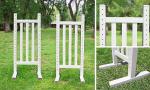 Beautiful, fresh, and indispensable. These horse jump standards are sized perfectly for any arena. 5' Tall, 24" wide and 24" deep. They are what you need. Sold in pairs, 2 standards to a pair. Standards are inside posts for Cups, outside post is undrilled. For Keyhole Jump Cups order Keyhole Tracks and Keyhole Jump Cups separately. Made out of durable, strong, PVC, that does not need painting. Don’t forget to order your cups, tracks and base caps separately.
